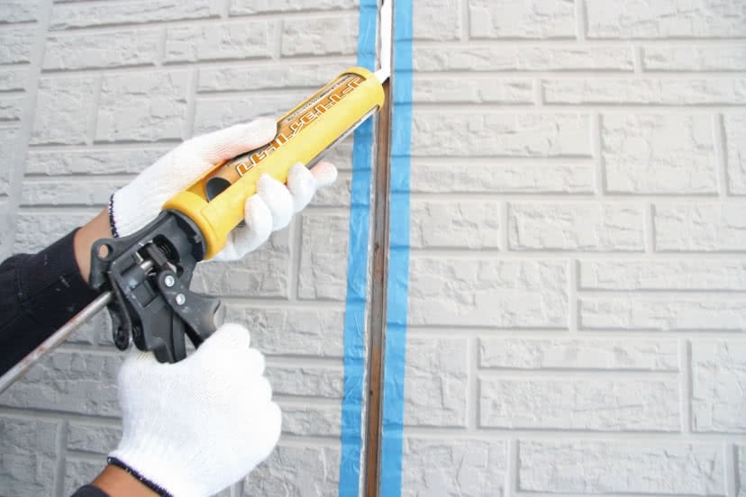 外装材をつなぐ独自のシーリング材は、耐候性が高く、力を加えてもちぎれない。